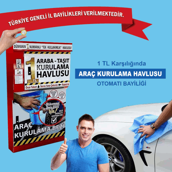 Araç Kurulama Havlusu Otomatik Satış Makinası Türkiye’de bir ilki gerçekleştirerek Araç Kurulama Havlusu self servis araç yıkama noktaları, avm, dinlenme tesislerinde yerini almıştır. Amaç, bireylerin araçlarını köpükleme ve yıkama işlemlerini bitirdikten sonra aracını pratik bir şekilde kurularken aynı zamanda ekonomiyi bir arada sağlamaktır.
